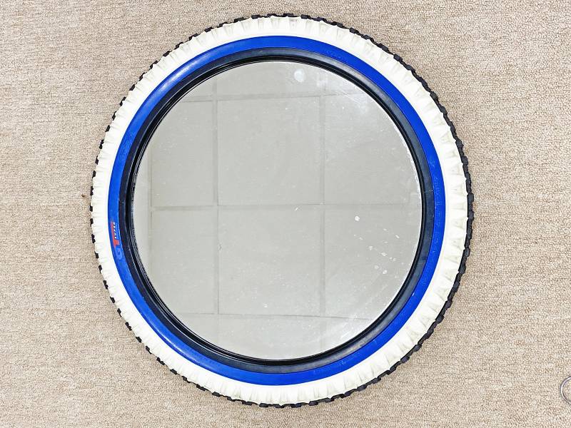 1985 körül készült, gumi biciklikerék keretes tükör. Régi IKEA.