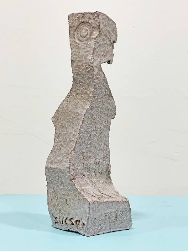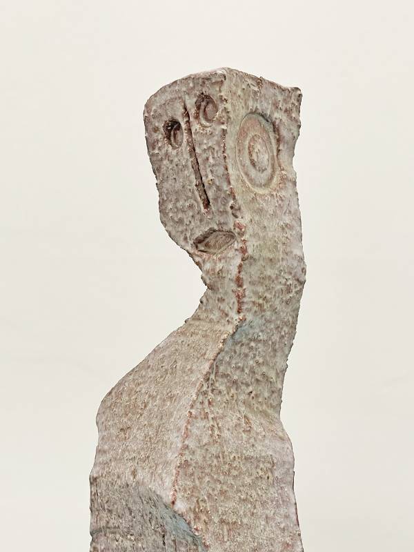 1970 körül készült, egyedileg mintázott, mázas samott kerámia szobor. Absztrakt forma. Kivételes, gyűjteményi alkotás.