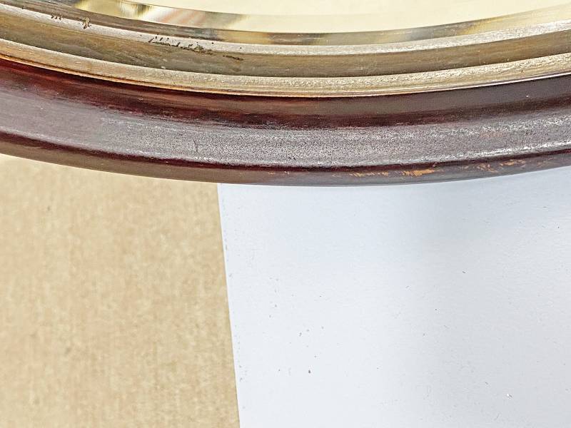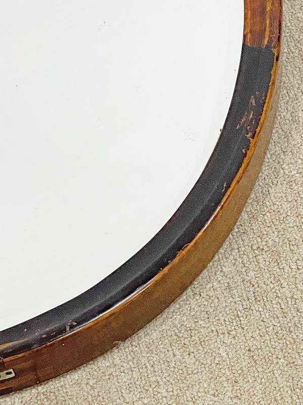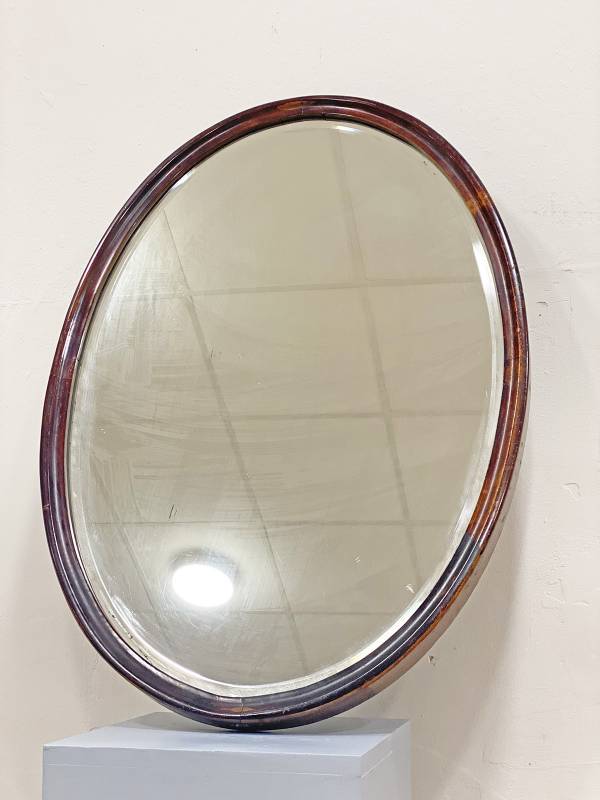 1930 körül készült, fa keretes ovális fali tükör. Gyönyörű, letisztult art deco darab. Keret tiszta fa, hátsó része fa hátlappal fedett.