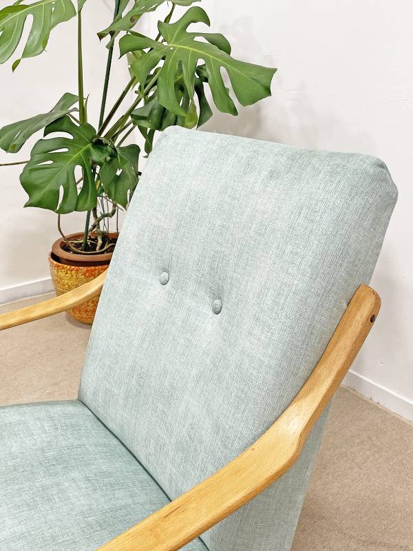 Teljesen felújított, frissen kárpitozott állapotban. Világoszöld kárpit jó minőségű, magas kopásállóságú anyag.