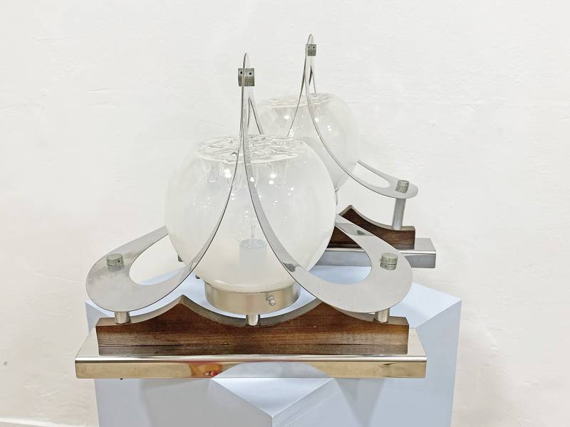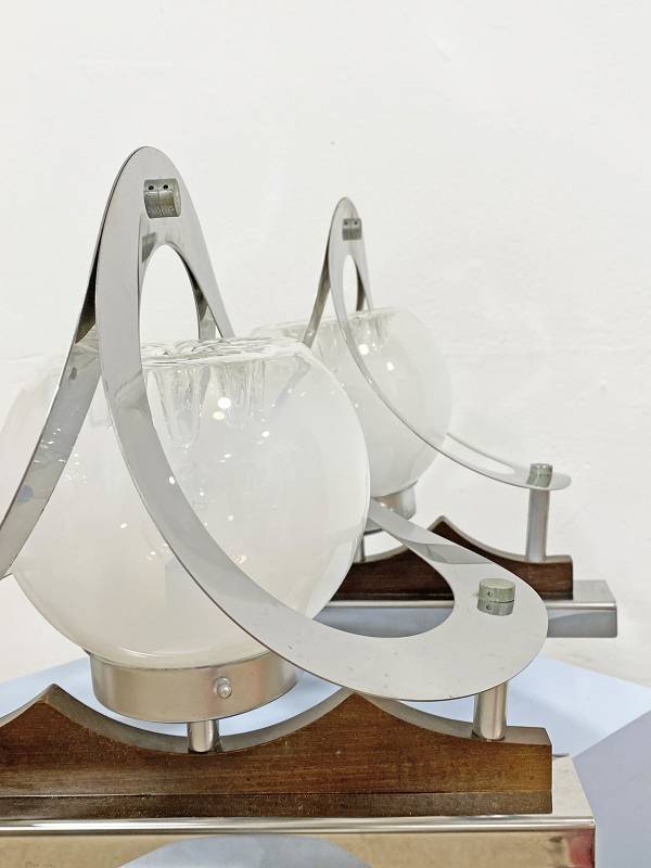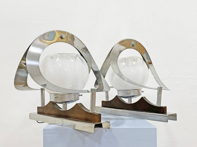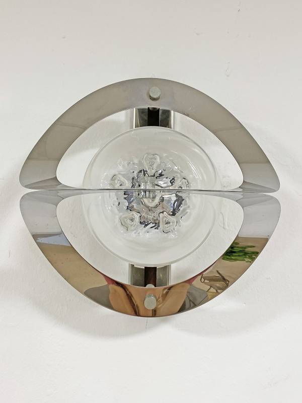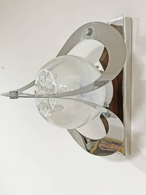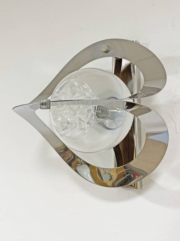 1965 körül készült, Olasz design falikar pár. Krómozott fém és fújt üveg. Csodálatos fényhatás. Igazi művészi darab.