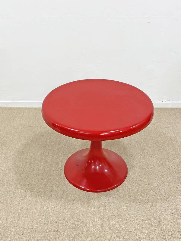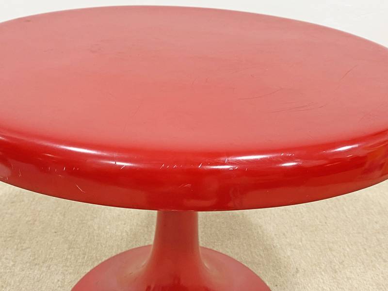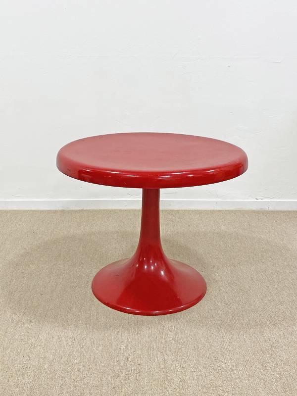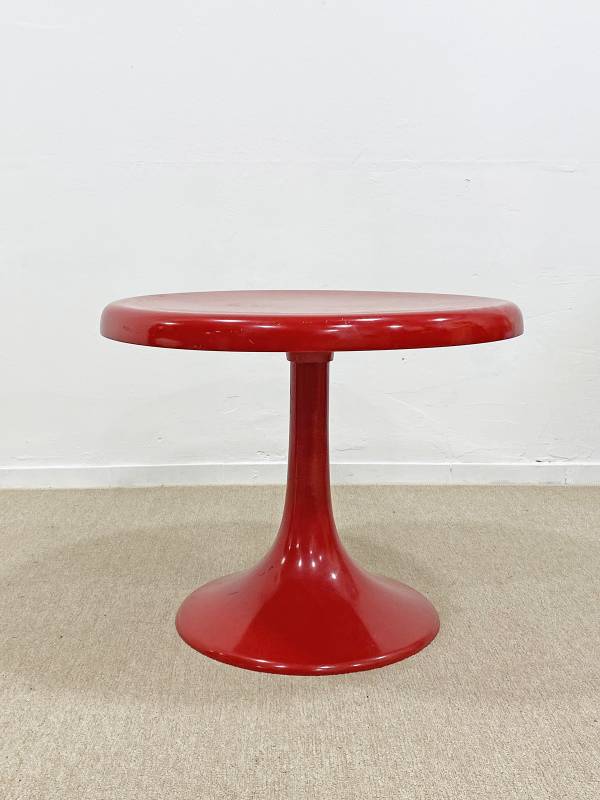1960 körül készült, gyantás műanyag alapanyagú, trombita lábú kávézó asztal, Jellegzetes úrkorszak formatervezés. Rendkívül hangulatos, modern darab.
