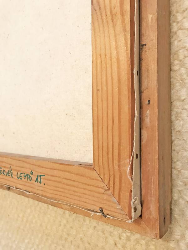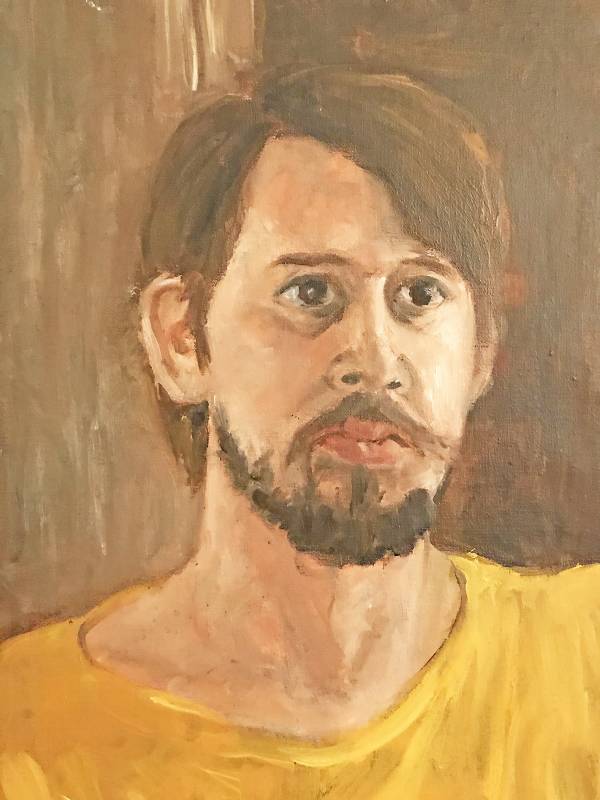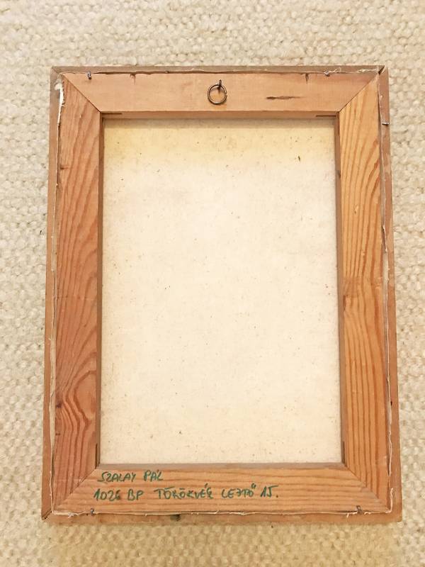 1980 körül készült, olaj-vászon festmény, fa keretben. Önarckép. Érzékeny, hatásos munka.